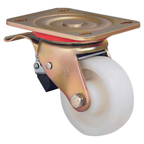 Большегрузное колесо ED01HKZ150F бренда EMES изготовлено из нейлона, устойчиво к воздействию различных агрессивных химических веществ. Подходит для эксплуатации в условиях, требующих соблюдения высоких санитарно-гигиенических требований — например, на предприятиях пищевой промышленности, в лабораториях и медицинских учреждениях. Кронштейн у модели поворотный, изготовлен из оцинкованной стали. Наличие тормозного механизма позволяет при необходимости надежно блокировать колесо, предотвращая его самопроизвольное перемещение.