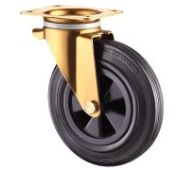 Колесо обеспечивает плавный ход на большинстве твердых поверхностей, не оставляет следов. Диаметр колеса — 100 мм, максимальная грузоподъемность — 110 кг. Поворотный кронштейн изготовлен из оцинкованной стали.