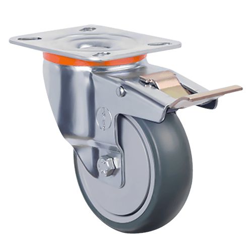 Аппаратное колесо EM01 MBT 80 F предназначено для установки на торговое оборудование, больничную мебель, медицинскую аппаратуру и т. п. Шинка выполнена из серой резины, кронштейн — из оцинкованной стали, а обод — из полипропилена. Колесо имеет диаметр 80 мм, ширину обода 32 мм и работает в температурном диапазоне от -20 до +60 °С. Грузоподъемность модели — 75 кг.