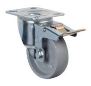 Данная сдвоенная аппаратная колесная опора предназначена для установки на торговое оборудование, больничную мебель, медицинскую аппаратуру и т. п. Контактный слой выполнен из серой резины, кронштейн — из оцинкованной стали. Модель имеет диаметр 75 мм, работает в температурном диапазоне от -20 до +60 °С. Грузоподъемность составляет 80 кг.
