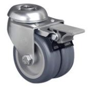 Большегрузная поворотная колесная опора EZ01HBZ150 рассчитана на серьезные эксплуатационные нагрузки, выдерживает до 350 кг. Колесо выполнено из нейлона, кронштейн — из оцинкованной стали. Модель рекомендуется для установки на передвижное оборудование, используемое в пищевой и химической промышленности, где важны стойкость к агрессивным средам и легкость санитарной обработки. Температурный режим эксплуатации составляет от -20 до +70 °С.