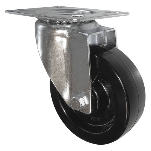 Поворотное термостойкое колесо RFG100 изготовлено из высокопрочного фенопласта, отличается износостойкостью, высокой устойчивостью к различным химическим веществам, жаропрочностью — рабочий температурный диапазон варьируется от -20 до +260 °С. Идеально подходит для горячих цехов пищевой промышленности, кондитерских и хлебопекарных производств, где требуется надежное и долговечное колесо для тележек и оборудования, способное выдерживать высокие температуры и агрессивные среды. Рассчитано на нагрузку до 120 кг. Материал изготовления кронштейна — оцинкованная сталь, тип крепления — платформа с отверстиями под болты.